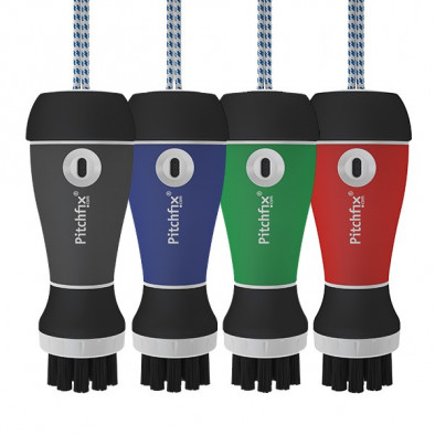 The Pitchfix Aquabrush is an essential accessory for any golf bag to clean your clubs. The Aquabrush combines the functional benefits of a hardwearing club-brush, with an integrated water spray to help loosen heavy debris from the club face, all in a compact and stylish body. The ABS casing is rubberized for a soft comfortable touch and grip and the hardwearing brush-heads are replaceable to extend the life of your Aquabrush when required. The refillable water-spray provides a safe way to add moisture to in-grained debris for better cleaning results.
