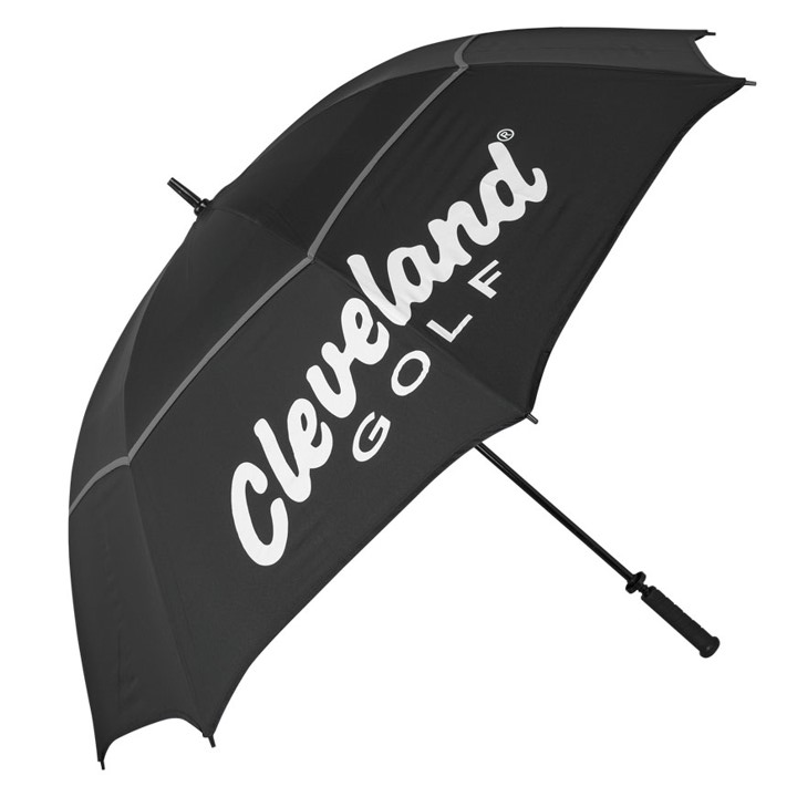 The Cleveland Double Black Umbrella is made with nylon material and a lightweight construction. This umbrella features a moulded handle for an easy carry and double canopy construction that is windproof and waterproof. Features -Nylon -Moulded handle -Lightweight construction -62" (157cm) double canopy construction -Wind venting internal cord design