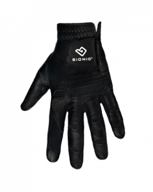 The Bionic Leather Stablegrip 2.0 Black Glove is designed with a new dual expansion zone thumb which adjusts to any size thumbs length and width to provide the best fit. The glove features a Bionic patented pad technology that helps even out the surface of your hand, providing a better and lighter grip on your club. The tapered pre-rotated finger design conforms to the natural shape of your hand. The glove features terrycloth micro pads that absorbs the moisture from your hand to keep them dry and provide maximum breathability. 5 REASONS WHY YOU SHOULD WEAR BIONIC GOLF GLOVES: 1. Greater Grip & Control The essential purpose for wearing a golf glove is the grip, the glove is tackier than human skin, particularly in warmer climates, and will assist to stop twisting of the club in the golfer's hand. Players who use a looser grip gain from using gloves as they create more friction and gripping power with the club. Professional and amateur golfers need golf gloves so they can exercise better control of the club when standing over the ball. 2. Reduces Hand Fatigue If you are playing a round or at the driving range, the Bionic golf gloves help you exercise control over the club and swing. The benefits of the Bionic golf gloves can give you the edge you need to play at your best. If your hands are not used to playing regularly, they can become very fatigued. Bionic gloves boast a patented relief padding system that offloads pressure by evening out the surface of your hands. This allows you to have a lighter grip without sacrificing any control and achieving as relaxed a swing as possible. This is for both the avid golfer or a casual participant, Bionic golf gloves work to keep your hands comfortable in a few different ways. 3. Blister & Callous Prevention Depending on the type of swing you have or the amount of golf you play, blisters are always a possibility if you do not take care of your hands. If a golf club is gripped too tightly, the repetitive swinging motion can cause blisters and calluses. Some golfers use the technique of taping areas of their hands in addition to wearing their gloves to ensure their hands are properly protected. 4. Excellent Moisture Management On a hot day, moisture will begin to come through your gloves and begin to compromise your grip. Before you would either put on a different glove or continue to play with a slippery grip. Bionic thought outside the box and designed a terrycloth moisture management system inside of the glove. Strategically placed terrycloth towels in high-risk moisture zones absorb perspiration so your glove doesn't become slick and you can keep your best grip for the entire round. 5. Improve Your Game By taking advantage of the reduced grip pressure on your golf club, two of the most common swing errors can be eliminated from your game. When a golfer has extreme grip this often leads to topping the ball or a pretty mean slice for most golfers. When a golfer has a looser more relaxed grip you are sure to hit the ball 20 to 30 yards longer than if your hands and forearms are clenched and tight, we want to make sure that you aren't ?strangling' your golf club. Forget hand and arm fatigue so you can finish your round strong. Features: -Moisture control -Stable grip -Improved performance -New Dual Expansion Zones -New index Finger design