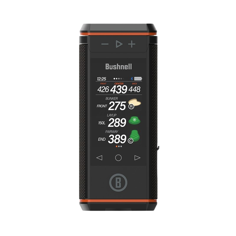 The Bushnell Wingman HD is a premium golf GPS speaker that combines powerful 360-degree sound with accurate course information. Its 3.5-inch colour HD touchscreen shows clear yardages, hole layouts, and hazards. With a magnetic cart mount, rugged waterproof build, and seamless app integration, it keeps you entertained and informed every round.Features: