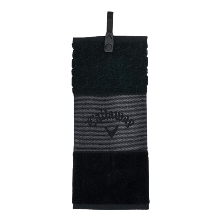 The Callaway Tri-Fold Towel offers exceptional absorbency in a small design that is made from 100% soft cotton. The carabiner allows you to easily attach to any golf bag for convenience on the go. Features: -Great absorption -Compact -16" x 21" -100% Cotton for softness and absorbency -Carabiner for Easy Attachment