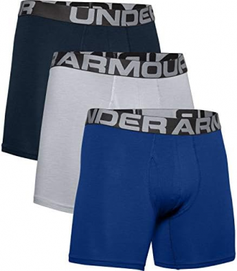 The Under Armour Charged Cotton 3 Pack Men's Boxers is made with lightweight, Charged Cotton® fabric that has the comfort of cotton, but dries much faster. This boxerjocks includes sweat wicking material and no side or back seams for ultimate comfort. The 4-way stretch construction allow maximum mobility and comfort.