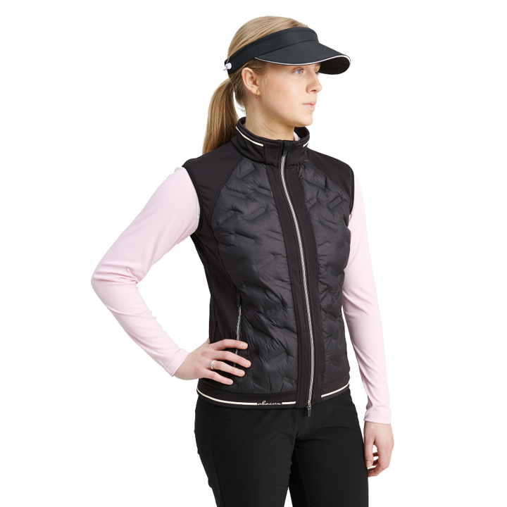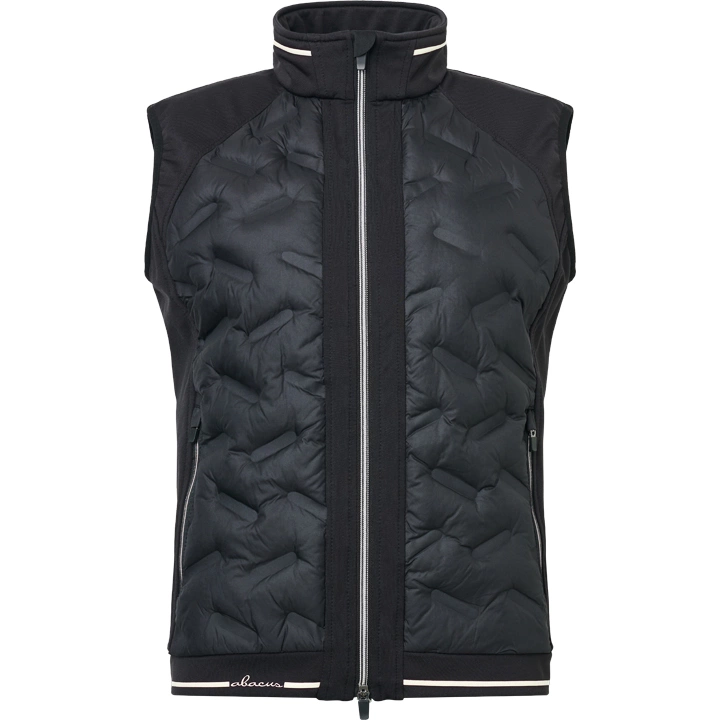 The Abacus Lady's Grove Hybridvest Black Jacket is designed with a seamless quilted and windproof fabric which is padded in the front and back to keep you warm throughout those icy rounds. The Jacket features a stretchable fleece that is breathable and brushed on the inside. Features: -Full zip -Two front pockets -Breathable fleece -Windproof -Padded at front and back body -Seamless quilted fabric