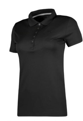 The Puma Ladies Pounce Black Shirt is made with lightweight stretch fabric that allows for added breathability and unrestricted mobility on the course. This shirt features DryCell technology that moves sweat away from skin, keeping you cool and dry through hot conditions. This shirt includes a 3 button-placket and a forward shoulder seam design. Features: -DryCell technology -3 button placket -Moisture wicking fabric -Stretch and breathable fabric
