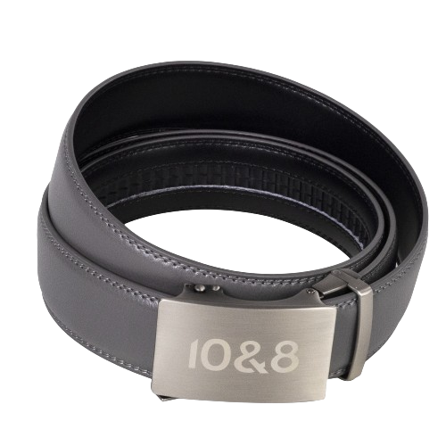 The 10&8 Grey Leather Belt is made from genuine leather, with leather lining that is made for a stylish and durable finish, suitable for both on and off the golf course. The wide-faced metal buckle with the 10&8 logo adds a touch of sophistication and versatility, complementing various outfits. Whether you're hitting the links or enjoying leisure time elsewhere, this accessory would certainly add a touch of elegance to your ensemble.