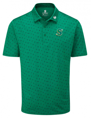 Made from highly technical fabric, it ensures optimal comfort and breathability, even in the hottest conditions on the course, allowing you to stay focused on your game in style. Additionally, the Stinger's Team personalities and passion for golf are clearly reflected in this polo shirt. The repeat pattern features fun and unique details, such as the S logo, Stinger wordmark, a golf buggy, a golf bag, a teed-up ball, and a pin flag, creating a dynamic and eye-catching look. Beyond the design, this polo is built for performance. Features: - Moisture-Wicking fabric - Stingers GC wordmark - Self fabric collar with stand - Springbok emblem Hem vent - New matte buttons
