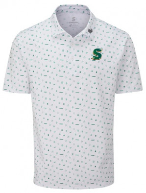 Made from highly technical fabric, it ensures optimal comfort and breathability, even in the hottest conditions on the course, allowing you to stay focused on your game in style. Additionally, the Stinger's Team personalities and passion for golf are clearly reflected in this polo shirt. The repeat pattern features fun and unique details, such as the S logo, Stinger wordmark, a golf buggy, a golf bag, a teed-up ball, and a pin flag, creating a dynamic and eye-catching look. Beyond the design, this polo is built for performance. Features: - Moisture-Wicking Fabric - Stingers GC wordmark - Self fabric collar with stand - Springbok emblem Hem vent - New matte buttons