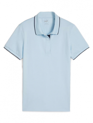 The Puma Ladies Pique Tipped Silver Sky Polo is designed with a moisture wicking fabric to keep out cool and dry out on the course. The polo features UV 50+ Sun Protection, 4-way stretch material and DRYCELL technology. Features: -Lightweight -Moisture-wicking technology -DRYCELL -UV 50+ -4 way stretch