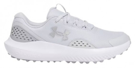 The Under Armour Surge Men's Grey Golf Shoes are designed with a water-resistant textile upper, a durable rubber outsole with directional traction pattern and a lace up style for the perfect fit. The shoes feature a deluxe comfort system sockliner that moulds to your foot for the ultimate comfort and a charged cushioning midsole that provides all day comfort and responsiveness and durability all day long. Features: -Water-resistant upper -NeverWet treatment -Enhanced cushioning -Deluxe comfort system sockliner -Charged cushioning -Durable rubber outsole