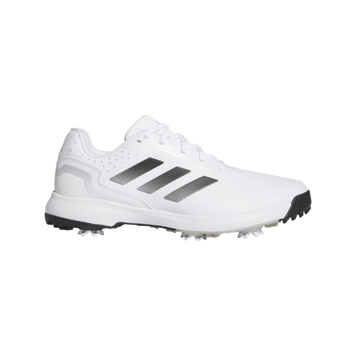 The Adidas Traxion Response is a performance-focused spiked golf shoe, featuring Adiwear traction outsole for enhanced grip on turf. The upper combines synthetic or microfiber leather with textile lining and is treated for moderate water resistance. Beneath, midsole cushioning (often Bounce or Cloudfoam) ensures comfort, while the broader fit and lace closure offer stability through each swing. These shoes are built for golfers who value traditional traction under wet or challenging course conditions.