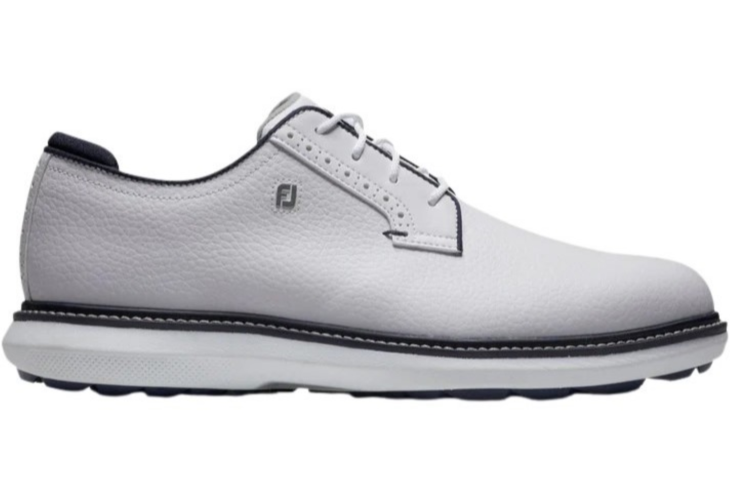 The FootJoy Traditions Blucher blends timeless style with modern performance. Crafted with premium waterproof leather and built on a Blucher construction for a generous top-of-foot fit, it delivers all-day comfort and reliable traction thanks to cushioned midsoles and replaceable cleats. Ideal for golfers who want classic aesthetics without compromising on functionality.