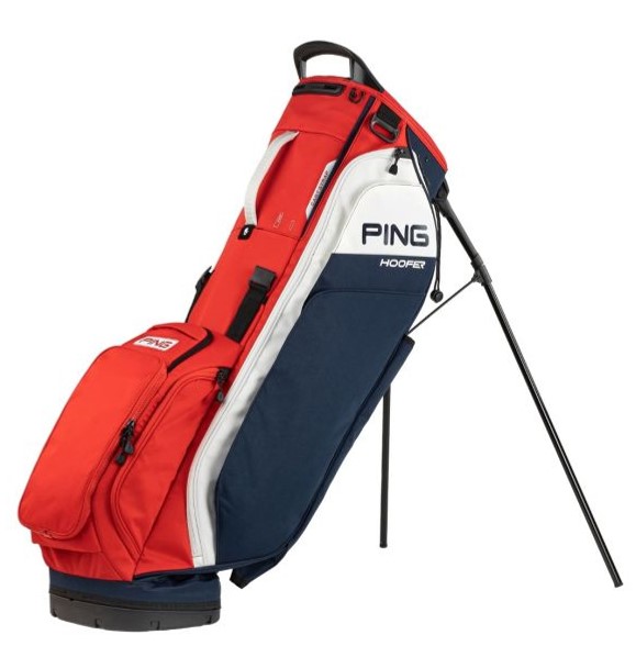 The Ping 23 Hoofer Stand Bag is made with durable material and a 14-way top to prevent club crowding. This stand bag features 5 ventilated pockets for maximum airflow and temperature control, as well as a cushioned hip pad for added comfort while carrying. This bag incudes shoulder straps that are padded with a re-engineered strap connection to makes it easy to convert from backpack style to single strap carry. Features -Weight: 2.5 kg -14-way top -Cushioned hip pad -5 ventilated pockets -Comfortable padded shoulder straps