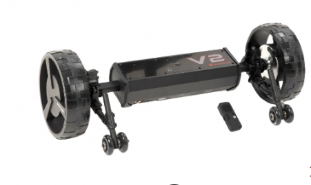 Easily convert your pushcart into an electric golf cart with the Alphard Club Booster V2. Simply manoeuvre your cart across any terrain with the peace of mind that it can conquer any slope and will not tip over. Does not include Cart Specific Bracket. Cart specific bracket must be purchased separately. Features: - Remote controlled and has a phone app as a back up control - 6-axis gyroscope which keeps your cart going straight on slide slopes - Downhill Speed control ensuring you cart will never speed away from you - Automatic Park break - Free anti-tip wheels which is durable and strategically designed to prevent tipping regardless of the slope - Free-wheel mode at a push of button so you can operate freely without any power - Fits on Clicgear 3 wheel carts, Rovic RV1S/RV1C, Clicgear Model 8.0 +, Big Max IQ, Sun Mountain Speed Cart, Sun Mountain Micro Path/Pathfinder (Mounting brackets for the specific cart must be purchased separately)